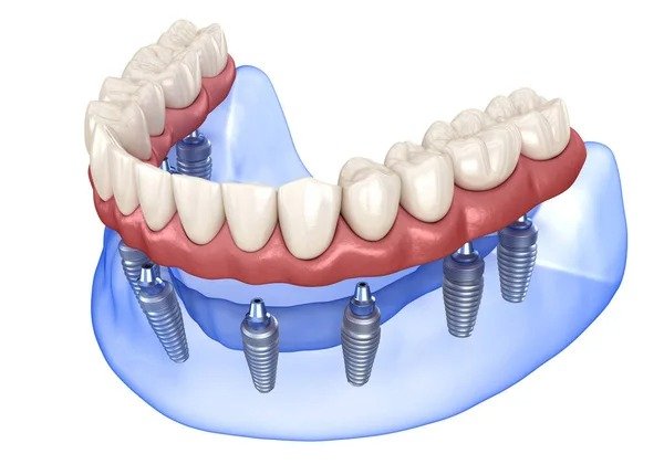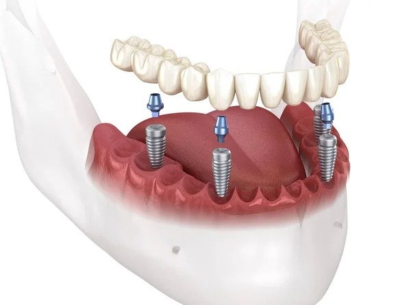 All on 4”(4 impianti) con 12/14 denti fissi in zirconio