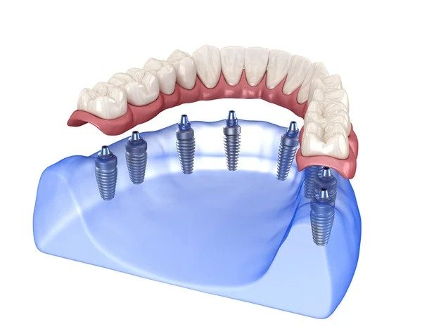 All on 8”(8 impianti) con 12/14 denti fissi in zirconio
